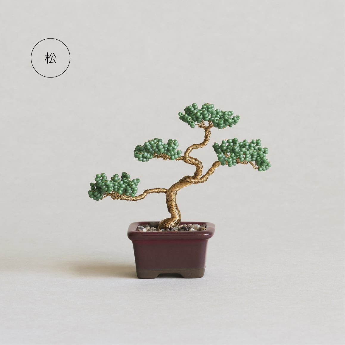 ビーズを通したワイヤーをねじって、小さな盆栽をつくるキット。枝や葉を自在に動かせるので、本物の盆栽のように好みの樹形に仕立てることができます。ねじったワイヤーの動きが、まるで本物の幹のよう。指先でつまめるサイズで、ずらりと並べて飾るのにもよさそうです。